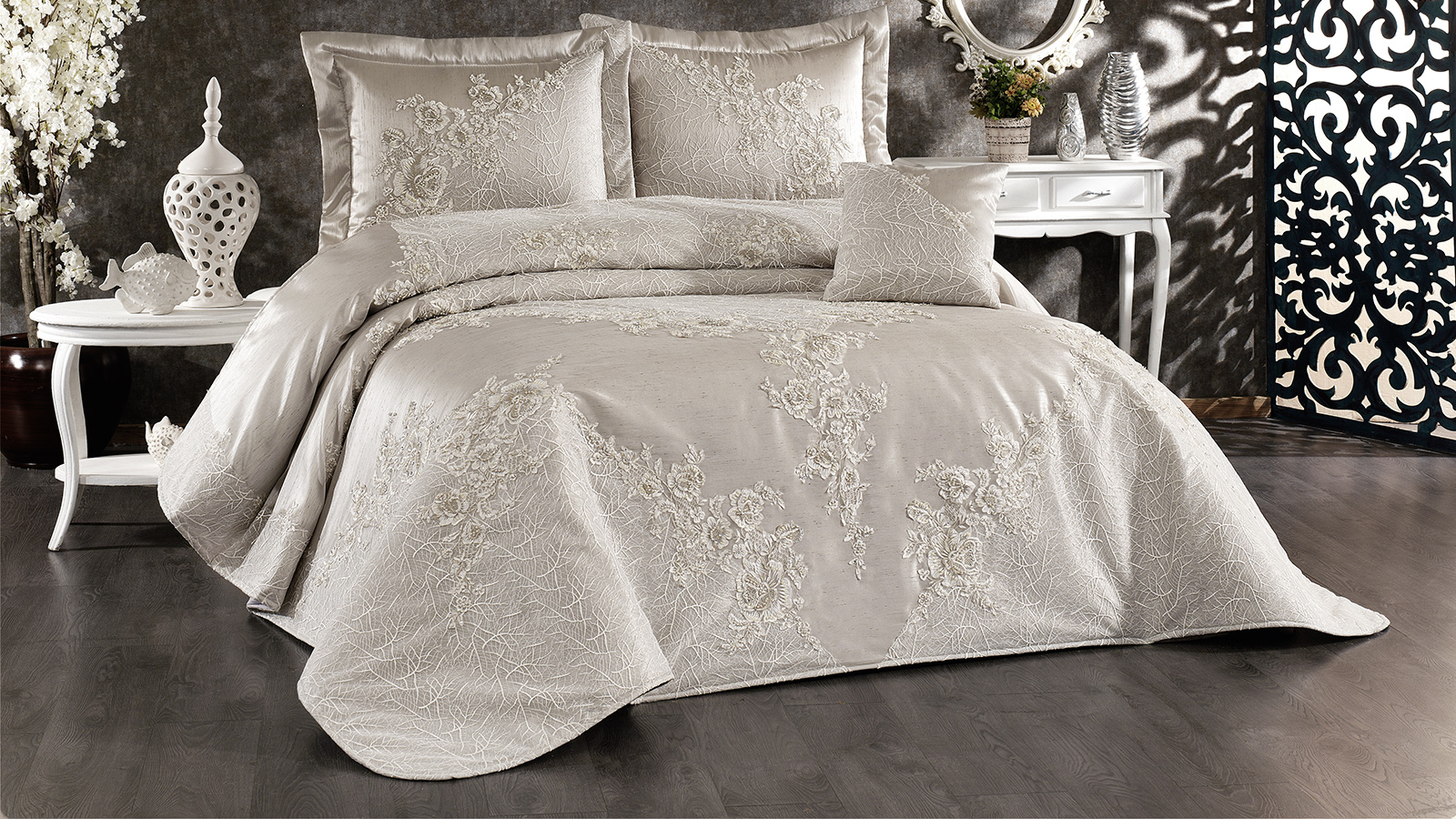 Mimoza Dantelli Yatak Örtüsü